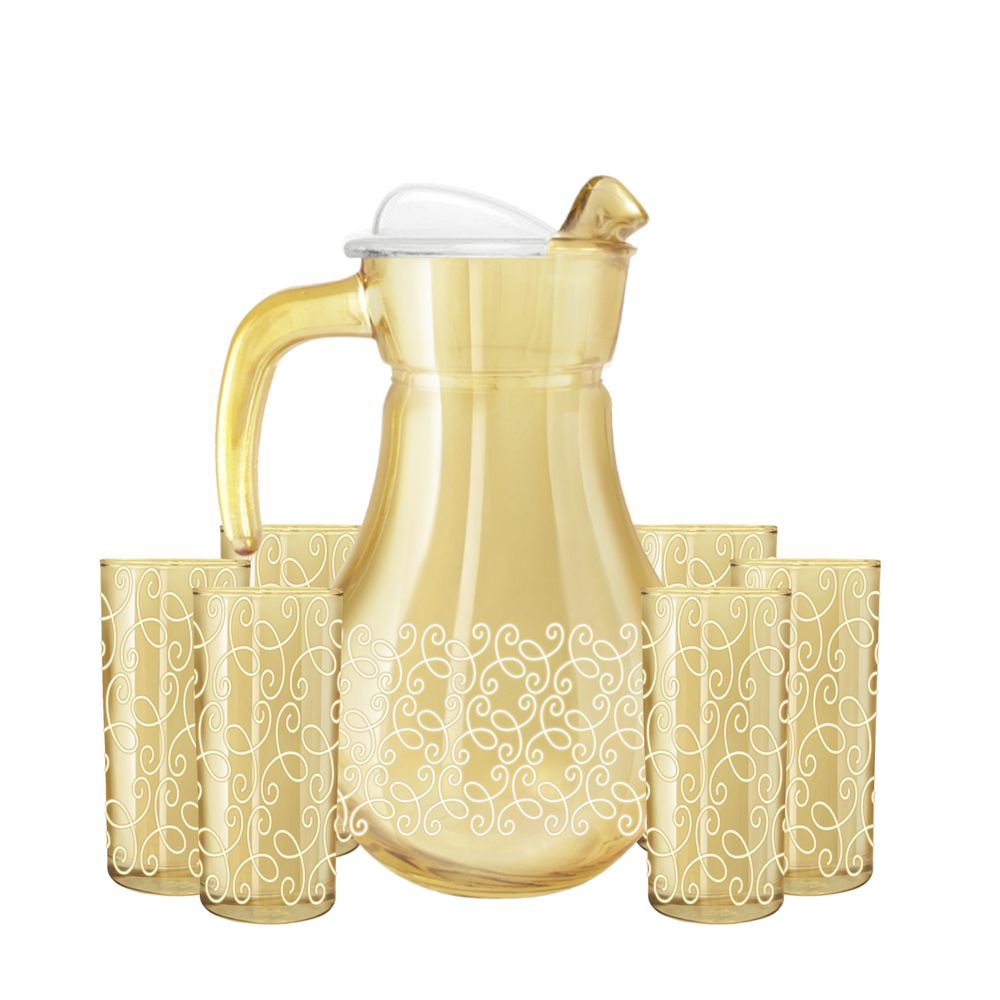 Набор 7 предметов с узором "Ажур" цвет "Янтарь" (EC168-3934/402/S/J/7) вы можете купить по выгодной цене в нашем каталоге. Интернет-магазин ghsz.ru предлагает большой ассортимент изделий из стекла с доставкой по всей России. Продукция компании вышла на лидирующие позиции в своем сегменте рынка. Ассортимент и дизайн выпускаемых изделий постоянно обновляется. По всем вопросам приобретения продукции обращайтесь по телефону 8 (499) 346-09-95. Смотреть весь ассортимент: Сеты по 7 шт..